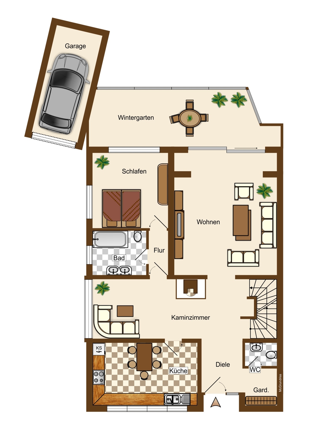- 7 Zimmer, Kaminzimmer, Wintergarten, Küche, 3 Bäder, Gäste-WC, Diele, Flure, etc.