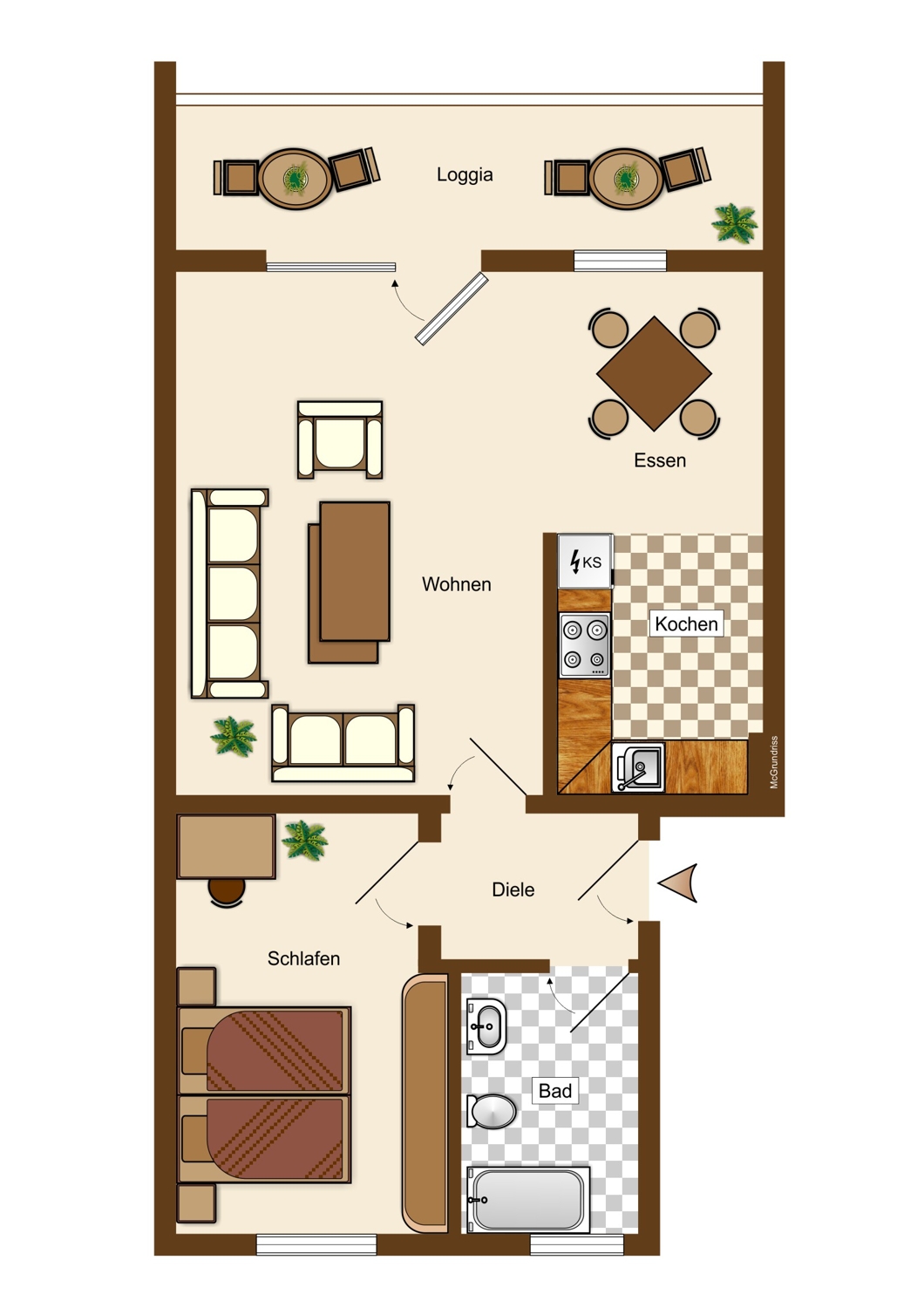 Mit einer Wohnfläche von etwa 52m² bietet diese Wohnung eine gut durchdachte Raumaufteilung, die sowohl Funktionalität als auch Gemütlichkeit vereint.
