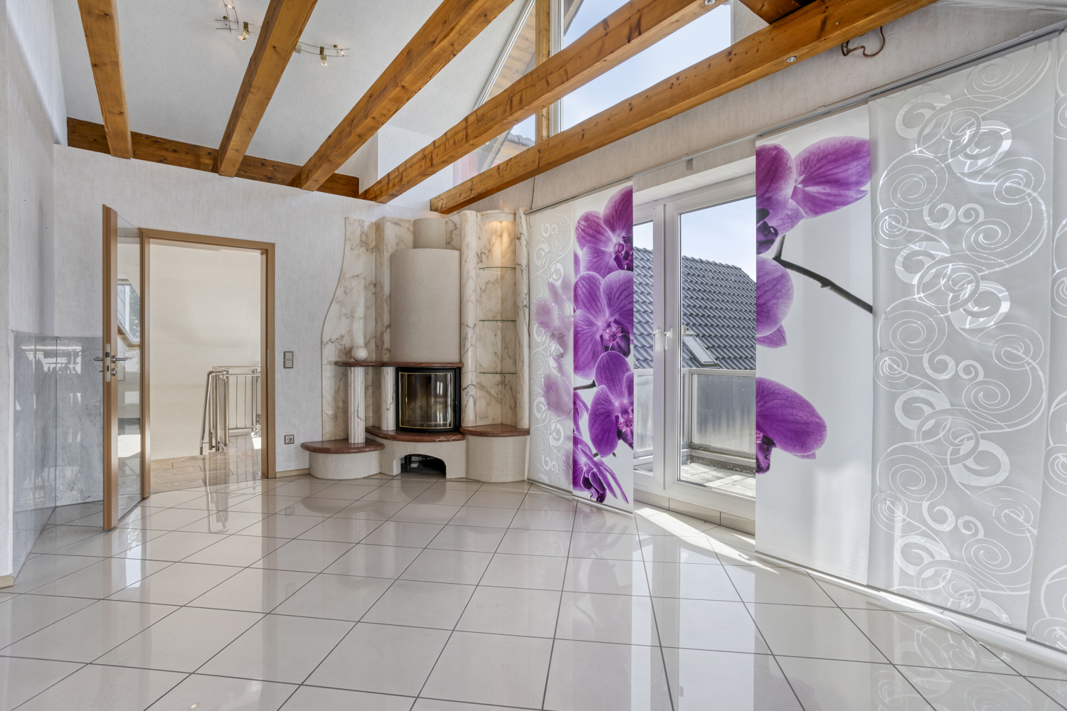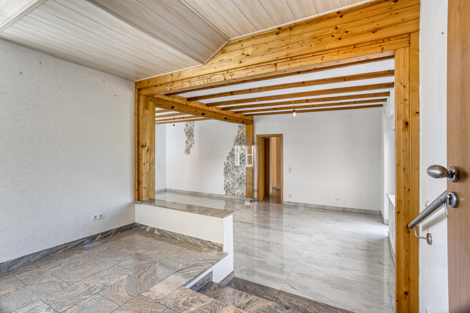 Der derzeitige Eigentümer hat die Immobilie als Zweigenerationenhaus zusammen mit der Mutter bewohnt, die ihr eigenes Reich auf dieser Ebene des Neubaus hatte. Auf rd. 64m² standen ihr 2 Zimmer, Flur, Wohnküche und ein Badezimmer zur Verfügung. Im Wohnzimmer ist ein Kamin installiert, von diesem Raum besteht ein Zugang auf die Terrasse.