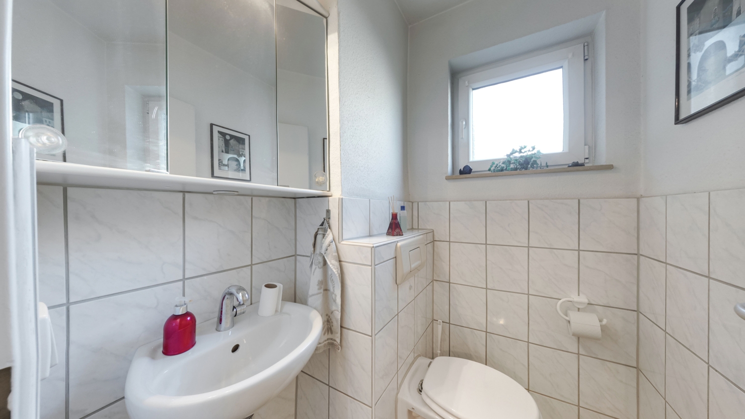 Im Tageslichtbad, welches als Duschbad ausgelegt ist haben sowohl Waschmaschine, als auch Trockner Platz gefunden. Zudem steht im Untergeschoss ein separater Trockenraum zur Verfügung.